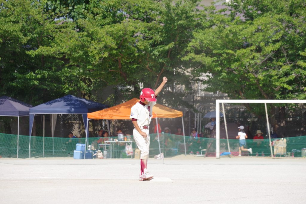 精一杯の応援とヘルメット・バットを用意してくれた5年生たち。いつもありがとう!